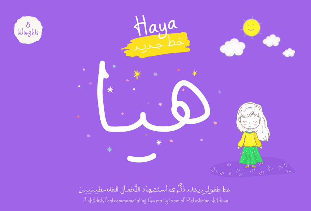 Haya Arabic Font Family was designed by Omar K. Ahmed and published by Okey Type. Haya Font contains 5 styles and family package options. Handwritten sans serifs style, as well as the development of free and attractive ligature to make playful children feel designs.